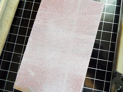 I have on hand the little sanding blocks you can buy for about $2.00 at the hardware store. The are very handy in the craft room! I gave this stamp a vigorous rubbing and then wiped off the dust with a damp wipe